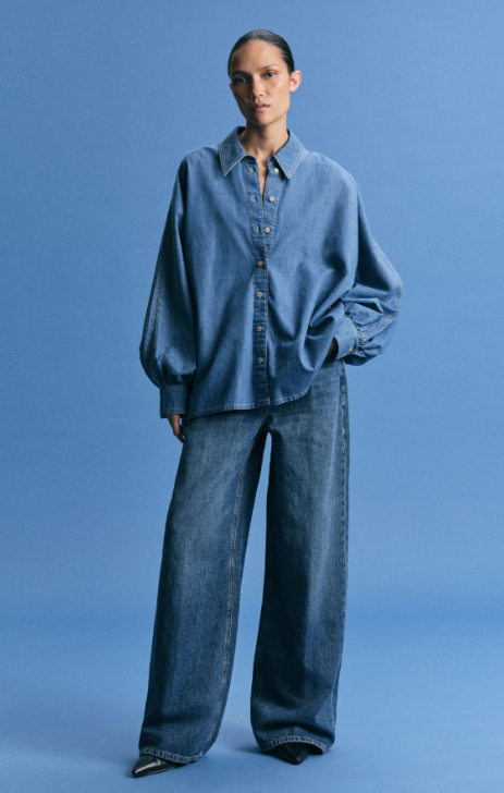 MOYALA ist eine Bluse mit Balloonärmeln. Sie überzeugt mit einem cleanen Design und auffälligen Volumenärmeln. Der klassische Kentkragen und die durchgehende Knopfleiste sorgen für eine zeitlose Silhouette. Die gerafften Ärmelbündchen setzen einen modernen Akzent und verleihen dem Look architektonische Tiefe. Der Indigo Denim hat eine helle Farbgebung und einen leichten Wascheffekt was ihn zu einem echten Everyday Essential macht.