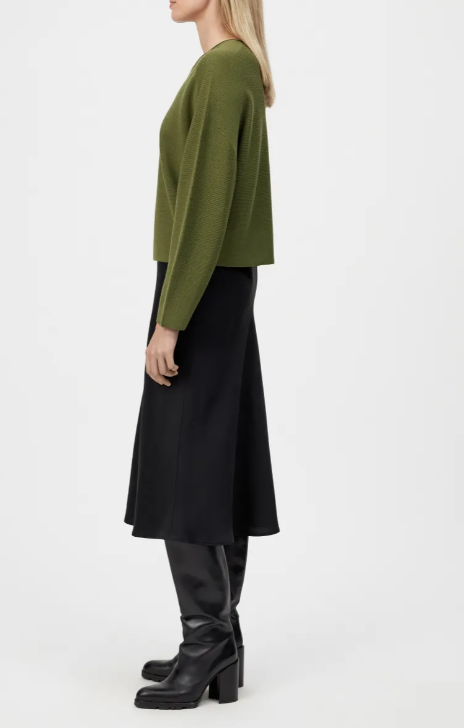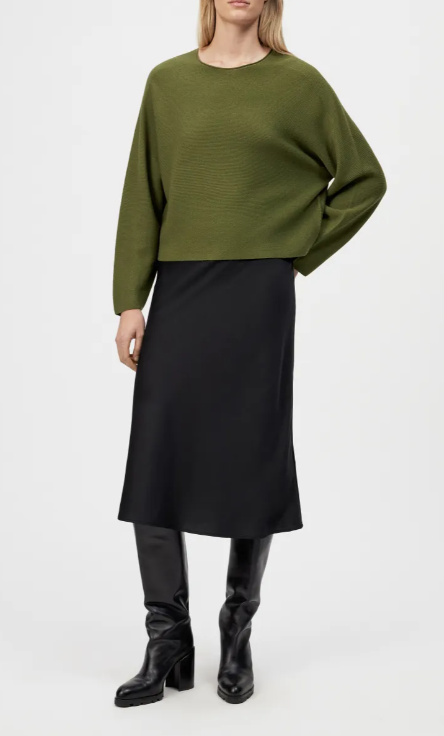 MEAMI ist ein verkürzter Egg-Shape Pullover. Das besondere Detail ist der gerollte Halsausschnitt. Die hochwertige und luxuriöse Merinowolle bietet einen zeitlosen Stil und höchste Qualität.
