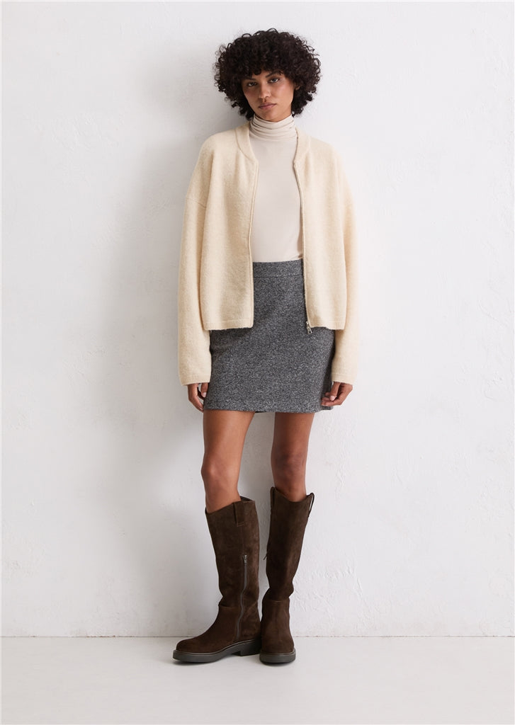 Strickblouson loose aus Schurwolle-Alpakawolle-Mix in beige