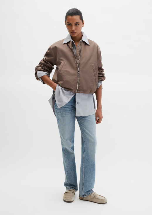 Perfekt für das "Trans-Seasonal-Dressing", wenn die Jahreszeiten ineinander übergehen: Der lässige Blouson hat sich von der praktischen Pilotenjacke zum modischen Must-have entwickelt. Er ist zu einem echten It-Piece geworden und verleiht jedem Outfit im Handumdrehen einen lässigen Statement-Look. Das Modell verfügt über ein kompaktes Rippstrickbündchen am Kragen, einen kernigen Metall-Frontreißverschluss und zwei praktische Leisten-Eingrifftaschen. Die Jacke ist gefüttert, leicht wattiert und wasserabweisend. Mit den neuen gerafften und gebauschten Gummizugband-Details an Ärmelabschluss und Saum setzt sie den angesagten Boho-Chic ein wenig um und bringt ihn in die eher kühlere Jahreszeit.