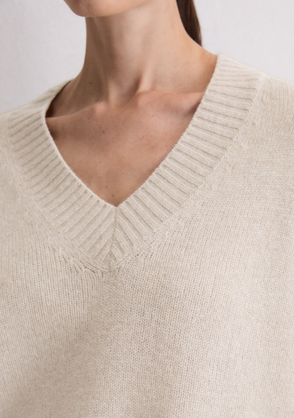 V-Neck-Pullover relaxed aus softem Merinowolle-Mix in beige