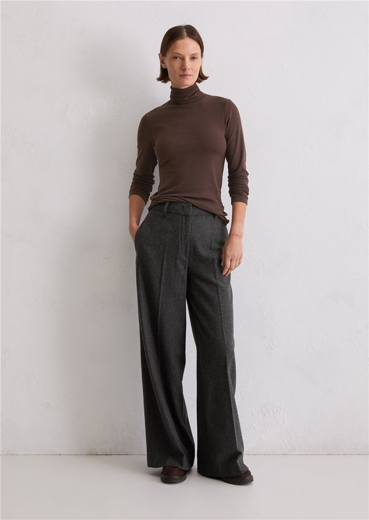 Klassiker in softem Ripp-Jersey: das Rollkragen-Longsleeve in schmaler, femininer Schnittform mit hohem Kragen zum Umschlagen. Die Qualität: ein hochwertiger, stretchiger Modal-Baumwolle-Mix mit feiner Rippenstruktur. Das lässige Longsleeve ist eines der zehn wichtigsten Wardrobe-Staples und mindestens genau so vielseitig kombinierbar wie das zeitlose, weiße Basic-T-Shirt.