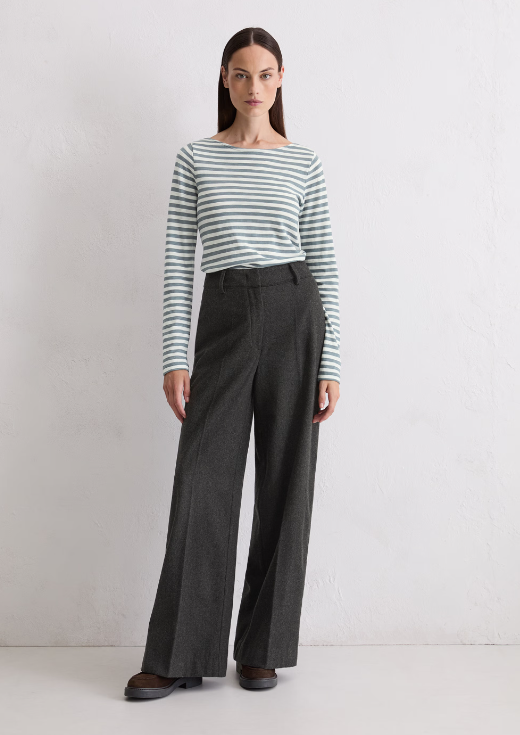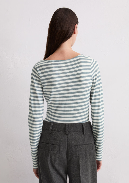 Es ist DAS Essential des klassischen French Chic und verbindet wie kein anderes Kleidungsstück Eleganz und Lässigkeit: das gestreifte Longsleeve im Breton-Stil. Nordisch interpretiert mit femininem U-Boot-Ausschnitt und langen, schmalen Ärmeln. Der Griff: weich, locker und körnig zugleich. Das geringelte Oberteil lässt sich super easy kombinieren. Tipp: Klassisch zu schmalen Jeans, Loafern und Trenchcoat. Im Stilbruch: zu Rock und derben Boots.