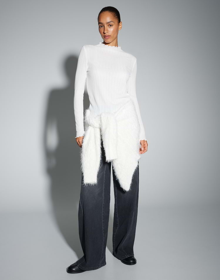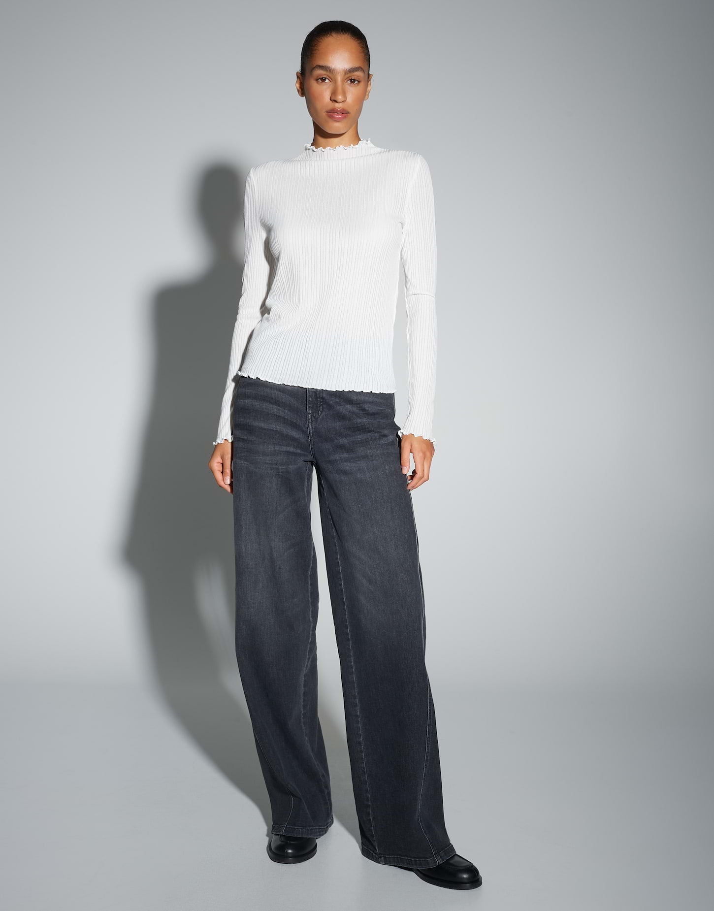 Leicht semitransparent und mit edlen Kurbelkanten wird das Rippshirt zum wandelbaren Stylingtalent, ideal für vielseitige Layer Looks, von casual bis chic.