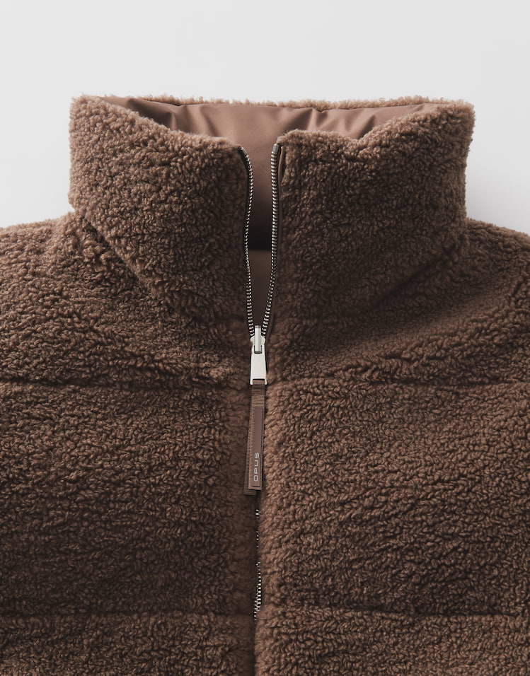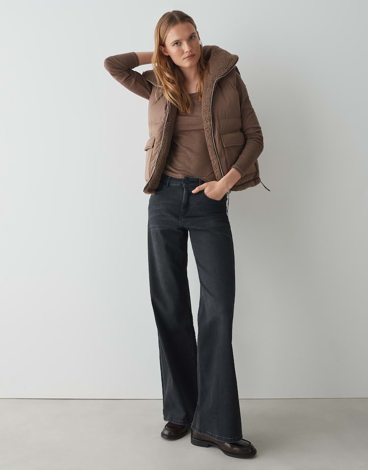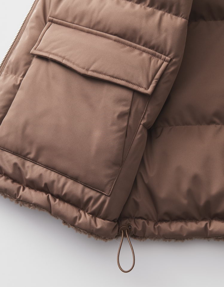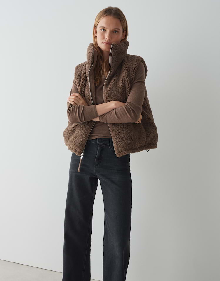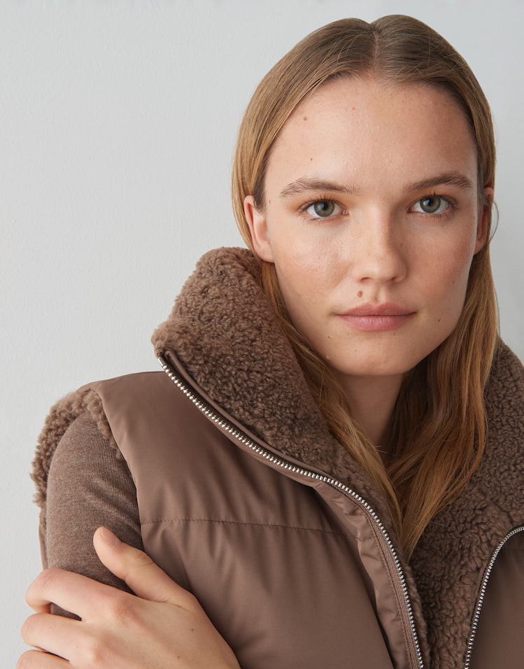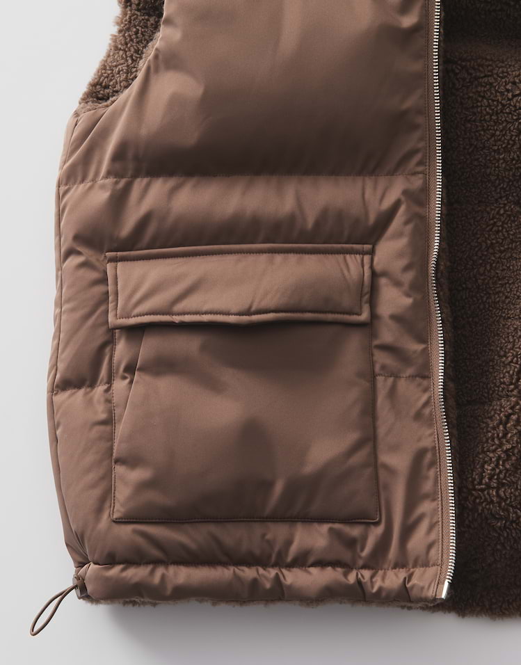 Zwei Looks in einem machen die wendbare Steppweste zum Highlight, denn sie begeistert mit kuscheliger Teddyseite und glatter wasserabweisender Oberfläche. Ob soft und wärmend oder wetterfest getragen, passt sich diese Weste jeder Wetterlage an.